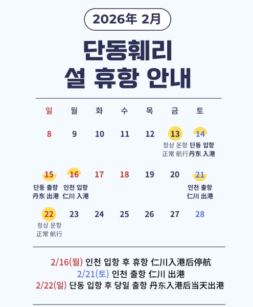 단동훼리 2월 구정연휴 휴항안내입니다.